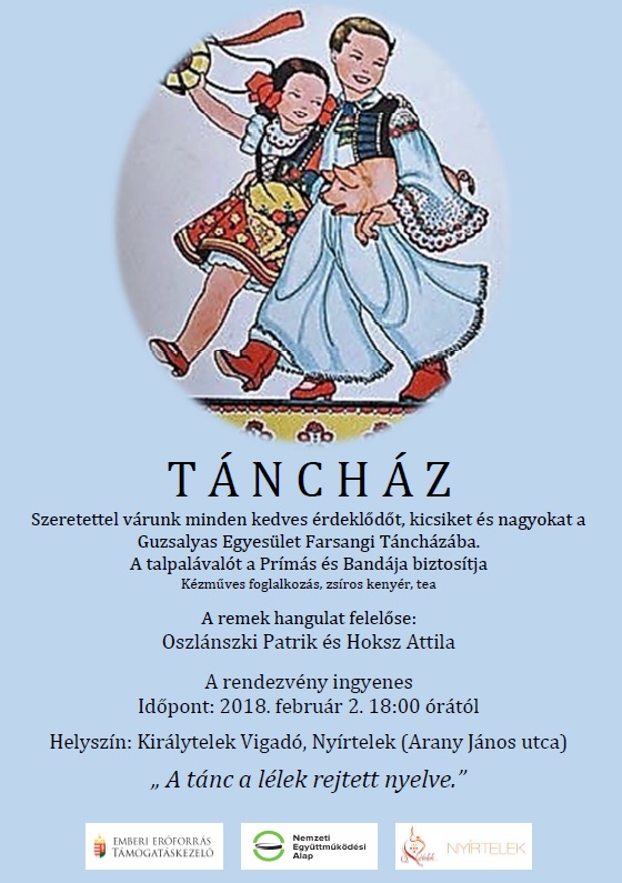 Beküldve: 2017-11-132018-01-23 Guzsalyas Farsangi Táncház! 2018. február 2-án pénteken este 6-tól újra táncház Nyírteleken!